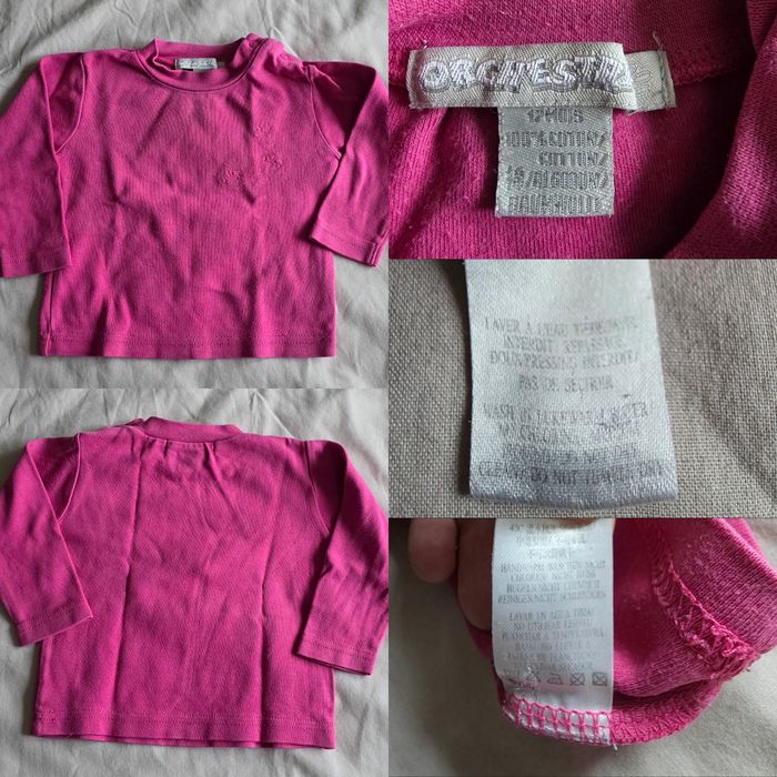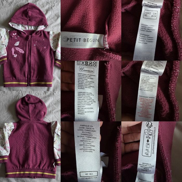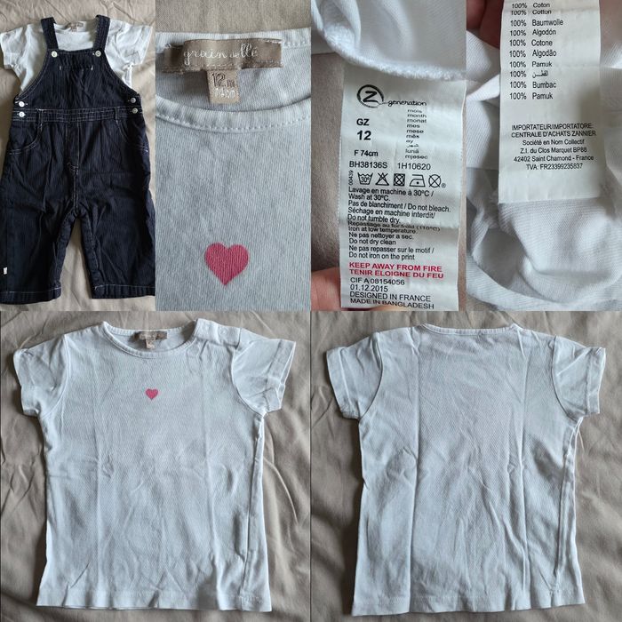 ​✨ ÉTAT : Bon état général. Les vêtements sont très mignons et fonctionnels. ​Salopette Obaïbi : Bon état, léger défaut de couture discret au dos (visible photo 4). ​Gilet Petit Beguin : Bon état, imprimé superbe, présence de bouloches à l'intérieur et zones de frottement. ​T-shirt Rose Orchestra : Très bon état, couleur éclatante. ​T-shirt Blanc Grain de Blé : Très bon état, motif cœur intact. ​📏 TAILLE & COUPE : 12 mois (74-80 cm). Le lot comprend une salopette en jean souple à bretelles réglables, un gilet zippé à capuche molletonné, et deux t-shirts classiques pratiques pour le quotidien. ​🌿 MATIÈRE : Mélange coton et polyester pour le gilet, 100% coton pour le reste du lot. Tissus doux, souples et résistants. ​📦 LIVRAISON : Envoi via Mondial Relay (lockers), Shop2Shop ou Chronopost (point relais physique). ​🎁 Réductions sur les lots activées ! Profitez-en pour parcourir le reste du dressing. *Articles vendus en lot de préférence, mais possibilité de les dissocier si besoin.