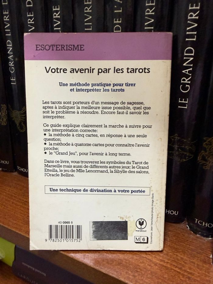 Je vends ce livre "Votre avenir par les Tarots" de Giovanni Sciuto, une méthode simplifiée en 10 étapes pour interpréter les tarots. - Titre : Votre avenir par les Tarots - Auteur : Giovanni Sciuto - Éditeur : Esotérisme - Genre : Autre Très bon état N'hésitez pas à me contacter pour plus d'informations !