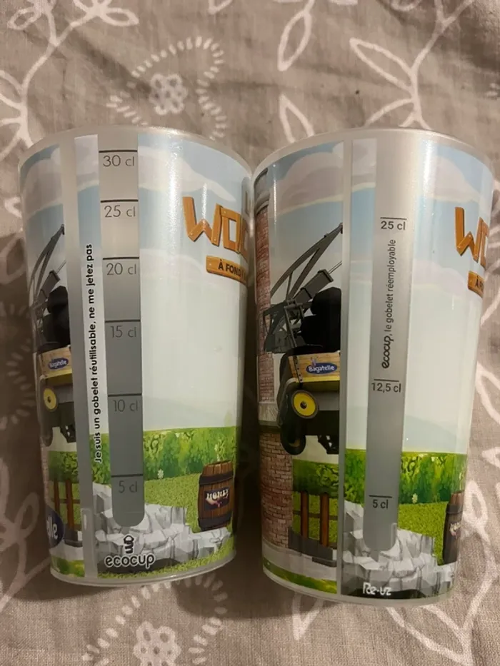 Je vends ce lot de 3 gobelets en plastique. - Type de produit : Lot de 3 gobelets - Matière : Plastique - Contenance : 25 cl Très bon état N'hésitez pas à me contacter pour plus d'informations !