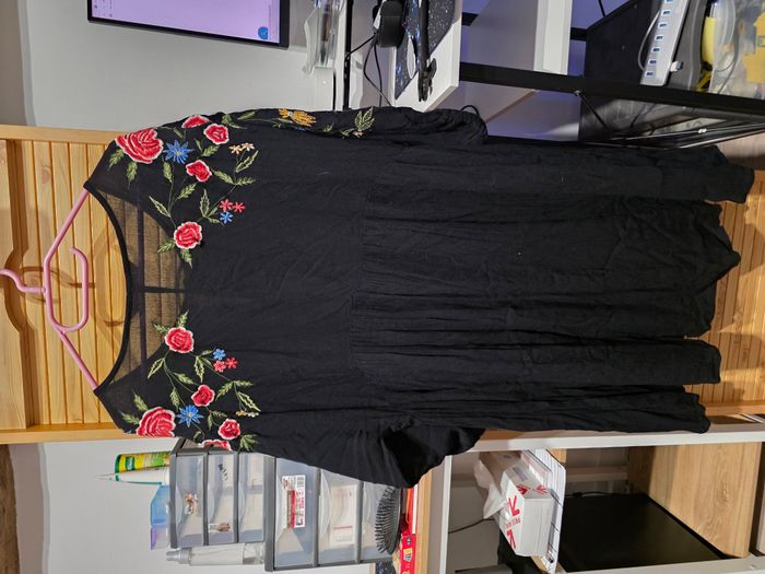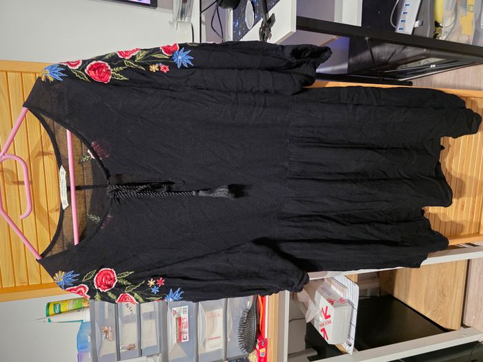 Robe noire Zara femme taille M – Broderies fleurs – Style bohème chic - photo numéro 2