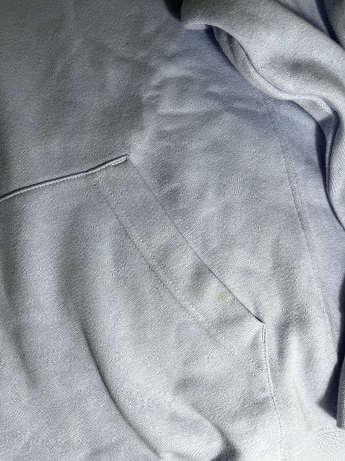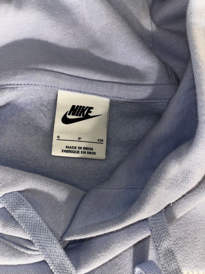 Ensemble Nike bleu clair en très bon état Taille : S Sweat + pantalon assorti, coupe confortable et agréable à porter. La couleur est bleu clair, parfaite pour un look casual et tendance. À noter : petite tache très peu visible sur la poche du sweat (voir photos). Elle ne se remarque presque pas une fois porté. Sinon, l’ensemble est en bon état général. N’hésite pas si tu as des questions