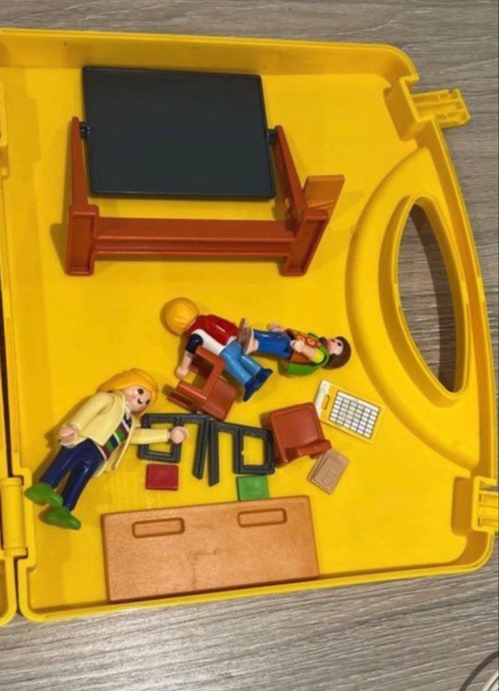 En parfait état Playmobil école avec valise de transport Playmobil Valisette école- City Life- L'école- valisette école Valisette contenant trois personnages Classe d'école avec tableau bureau et autres fournitures scolaires