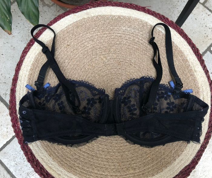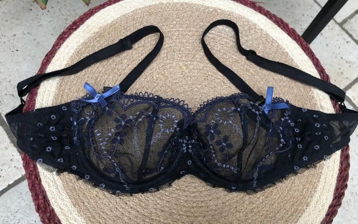 Très joli soutien-gorge de la marque Chantelle dans les tons de bleu ,85e mais taille coupée. Les bretelles ont été changé car elles étaient détendues. Du coup elles sont neuves ! Il est en très bon état