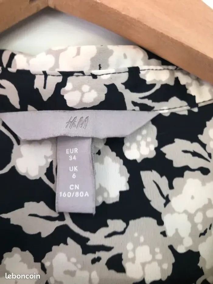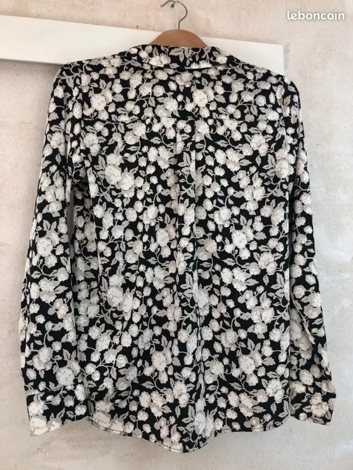 Porté une seule fois , ce chemisier est très classe et très agréable sur la peau. Taille 34 mais convient pour un 36 aussi Noir/crème /beige