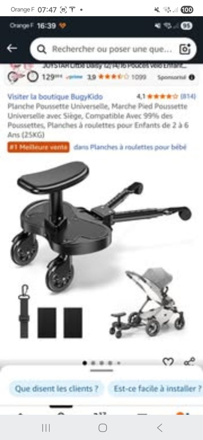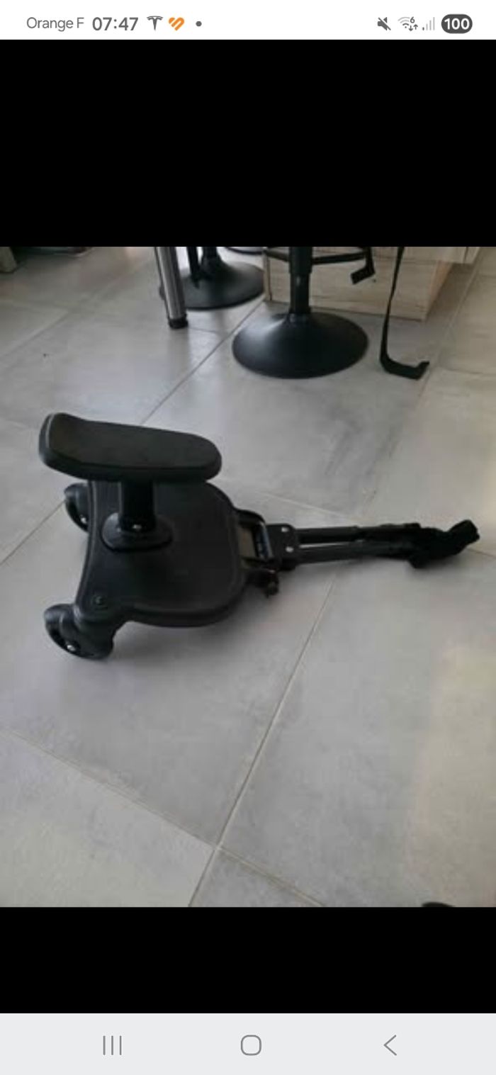 Bonjour Je vends une planche à roulette à accrocher derriere les poussettes Prix Amazon environ 45 euros Prix de vente 25 euros Utilisé 2 fois, mon fils préfére marcher 🤣