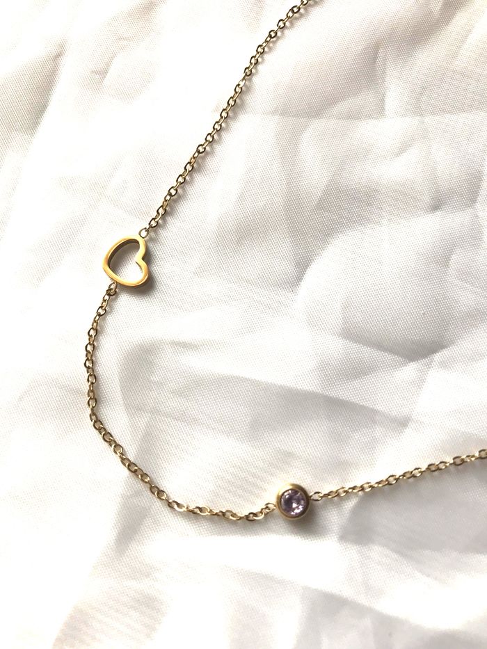 Collier Pendentif Cœur Doré Petite Pierre Œillet Mauve Zircon Amour Bijou Doré Fantaisie Femmes - photo numéro 1