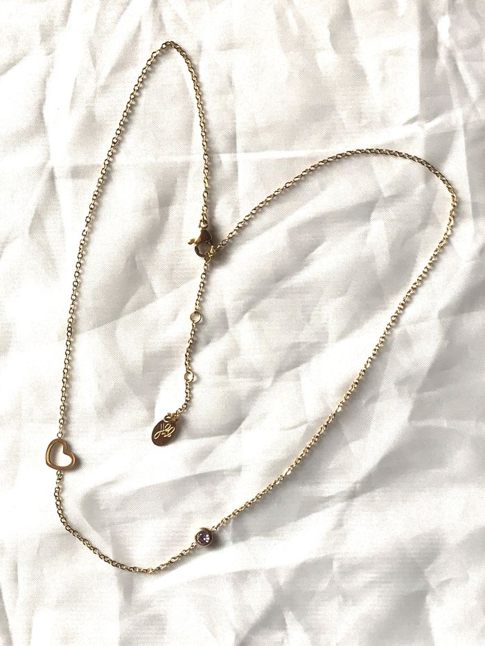 Collier Pendentif Cœur Doré Petite Pierre Œillet Mauve Zircon Amour Bijou Doré Fantaisie Femmes - photo numéro 5