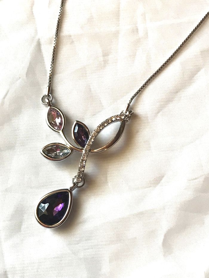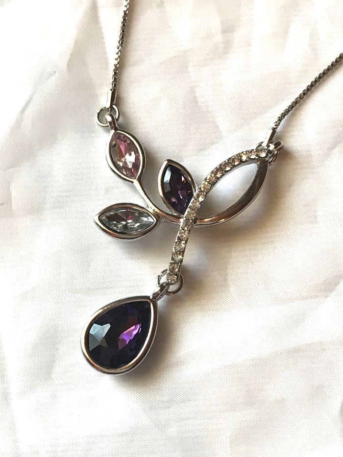 Parure Bijoux Feuillage Gouttes Violettes Strass Nature Bijoux Argentés Fantaisies Femmes - photo numéro 8