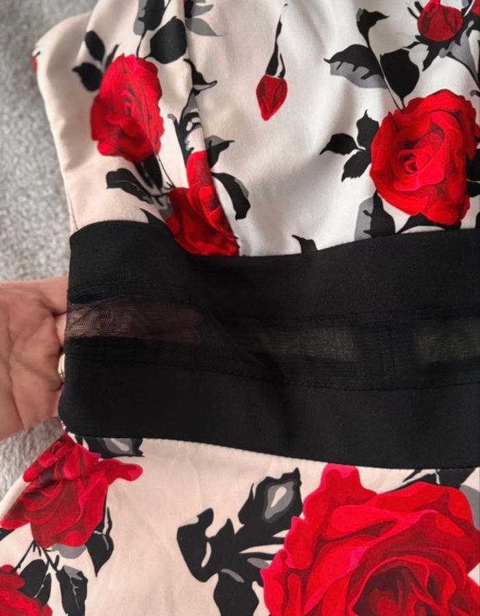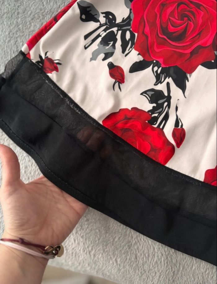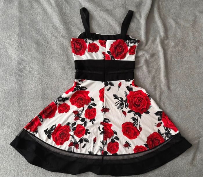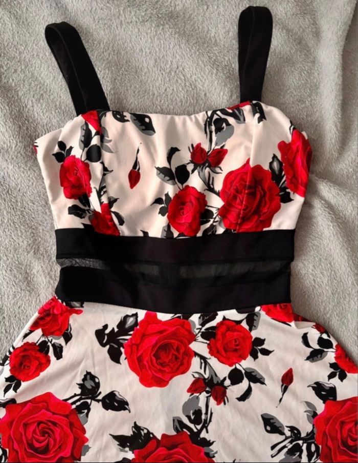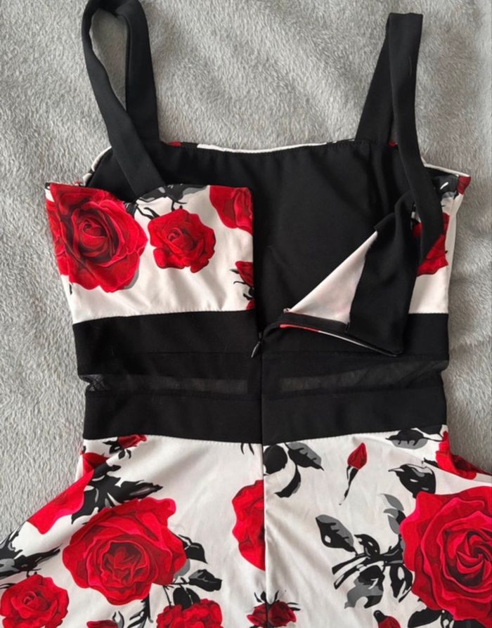 Jolie robe style rétro/vintage, très féminine 🌹 Motif floral rouge et noir sur fond clair, avec de belles finitions. ✨ Détails : • Taille : 36 / S • Fabrication italienne • Coupe cintrée et évasée • Empiècements légèrement transparents au niveau de la taille et en bas de la robe • Bretelles larges • Doublée • Très agréable à porter 👗 État : très bon état (voir photos) Envoi rapide et soigné ‼️Photo et vidéo de l’emballage avant envoi‼️