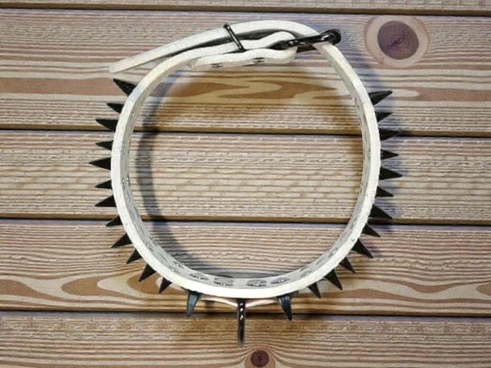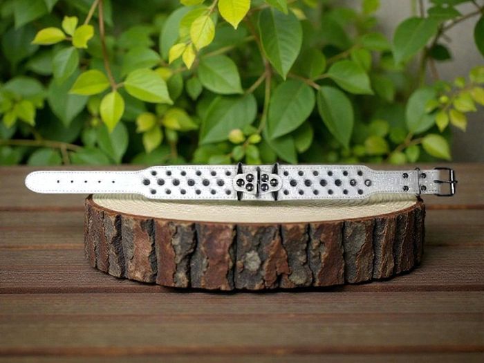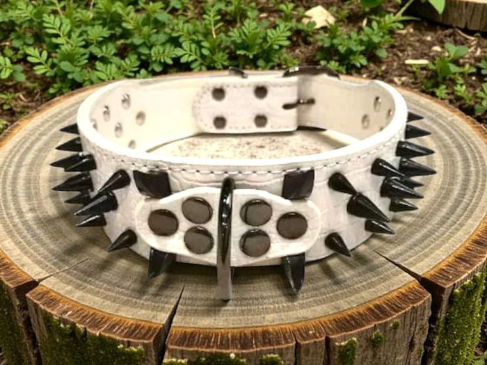Collier chien à pics NEUF taille M – collier design cuir PU argenté gris style molosse - photo numéro 1