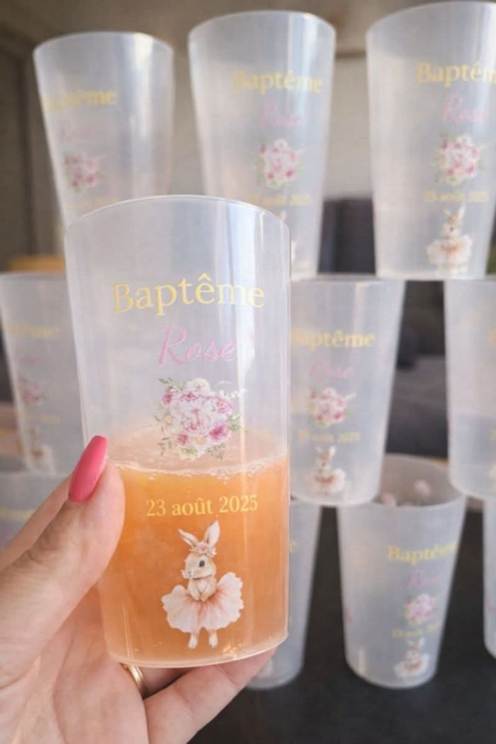 L’atelier de Dodo vous propose des gobelets personnalisés avec impression directe dans le gobelet ✨ 👉 Impression résistante qui passe au lave-vaisselle. 🎨 Design au choix : Photo Texte Image / logo Impression sur toute la surface Recto / verso Idéal pour tous vos événements : 🎉 Anniversaire 💍 Mariage 🎓 Baptême / Communion 🏢 Événement d’entreprise 🎄 Fêtes, associations, clubs… ⏳ Délai de création : 4 semaines 📩 Merci de me contacter avant toute commande afin de définir votre projet (quantité, design, date souhaitée). Création 100% personnalisée pour un souvenir unique 🥰