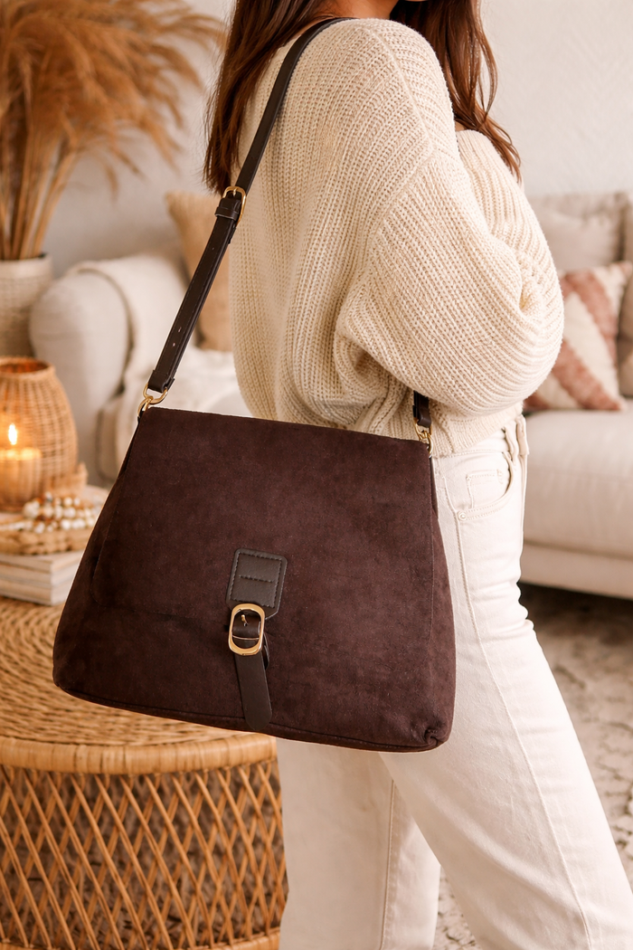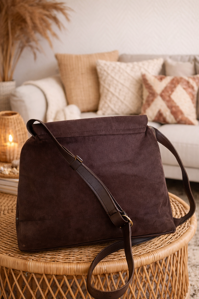 Sac bandoulière en suédine marron