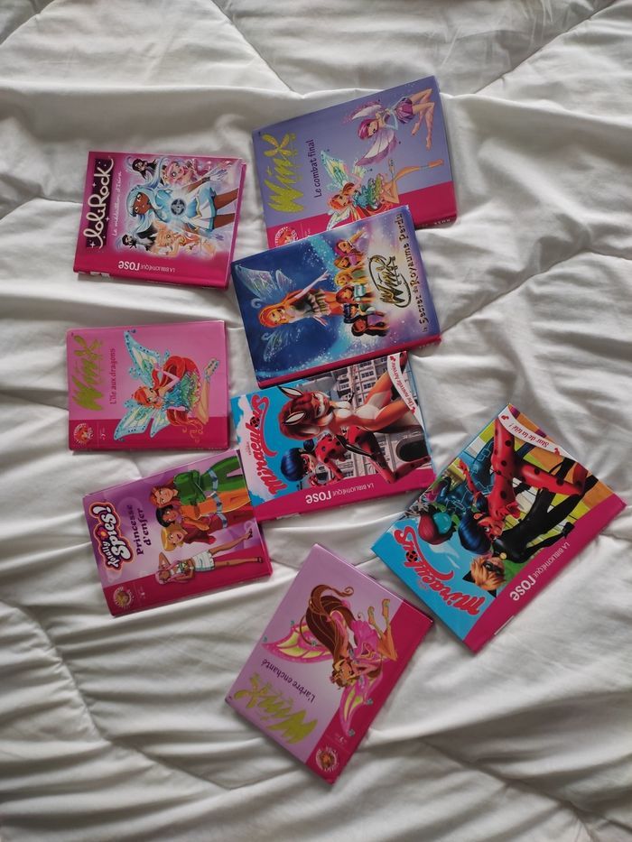 5 livres Winx en bon état, 2 livres miraculous en bon état, 1 livre loliRock en bon état et 1 livre Totally Spies en satisfaisant