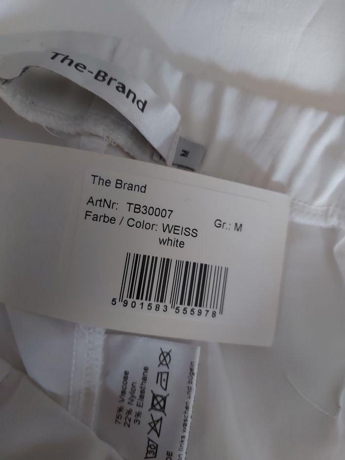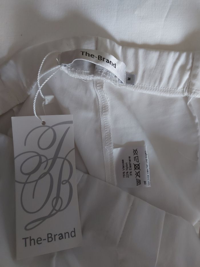 Pantalon blanc stretch, taille élastique The Brand Taille M Entrejambe 78 cm Neuf mais une tache suite entreposage, voir photos