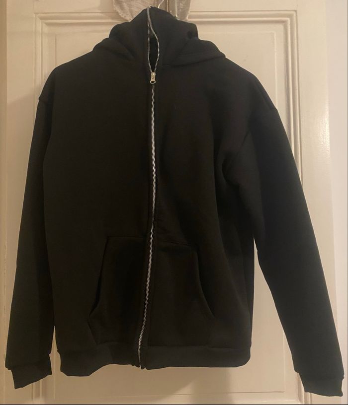 Sweat à capuche * 100 % neuf, encore sous emballage plastique, jamais porté. * Couleur : Noir. * Taille : S (coupe ample). * Fermeture éclair. * Fermeture éclair haute et double capuche pour une protection optimale du visage. * 2 poches latérales. * 100 % polyester. * Lavable en machine. * Envoi par mondial relais ou shop2shop-chronopost uniquement.