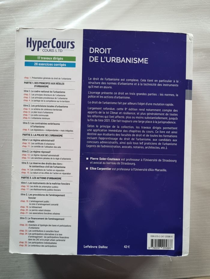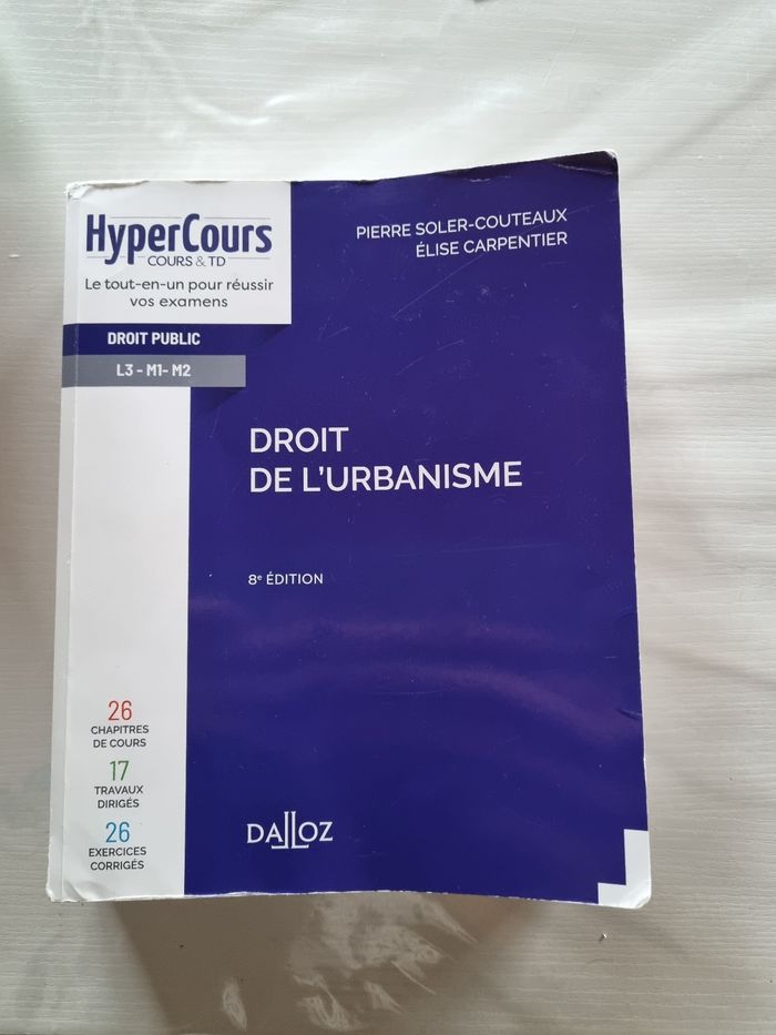 Livre droit de l urbanisme hypercours 8em édition dalloz non annoté qui a servi légèrement corné. Prix neuf 42 euros