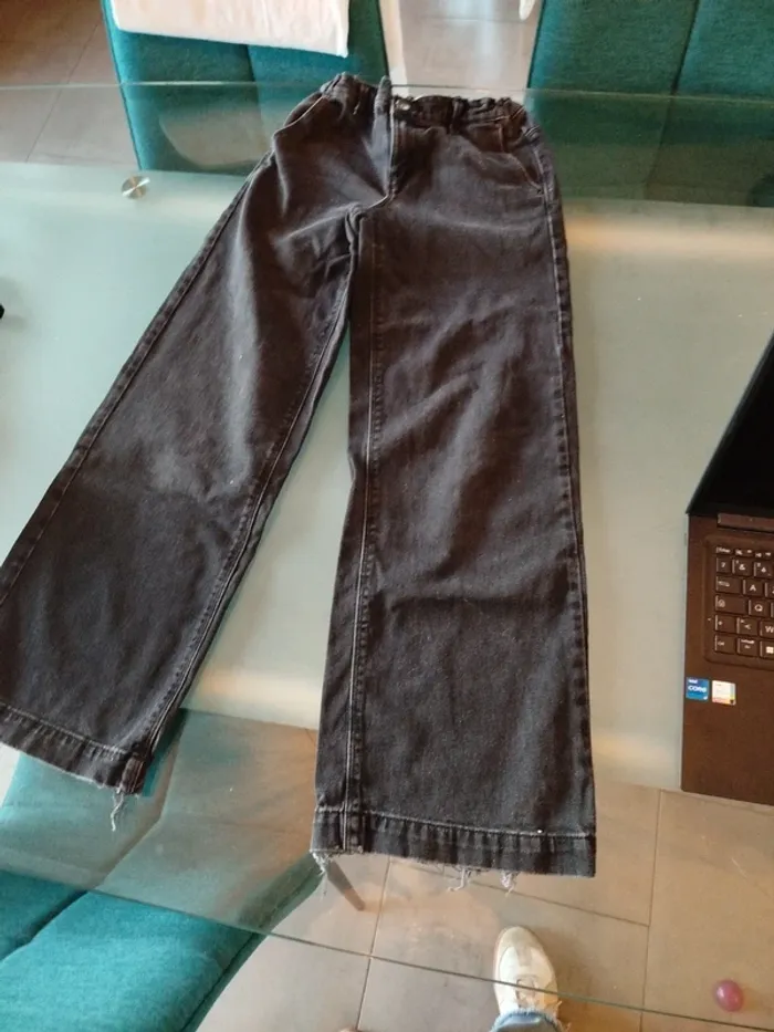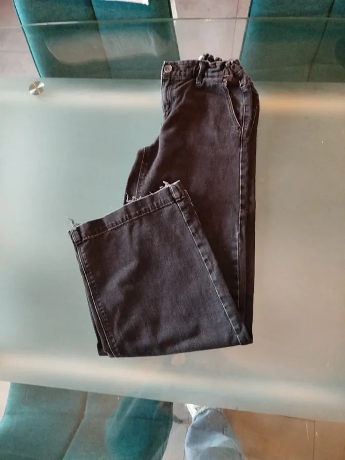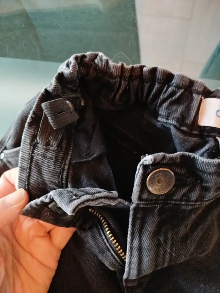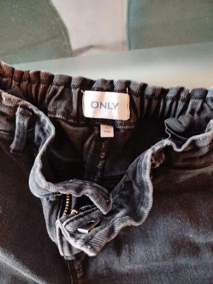 Taille réglable, le bas des jambes est effiloché sur l'arrière.