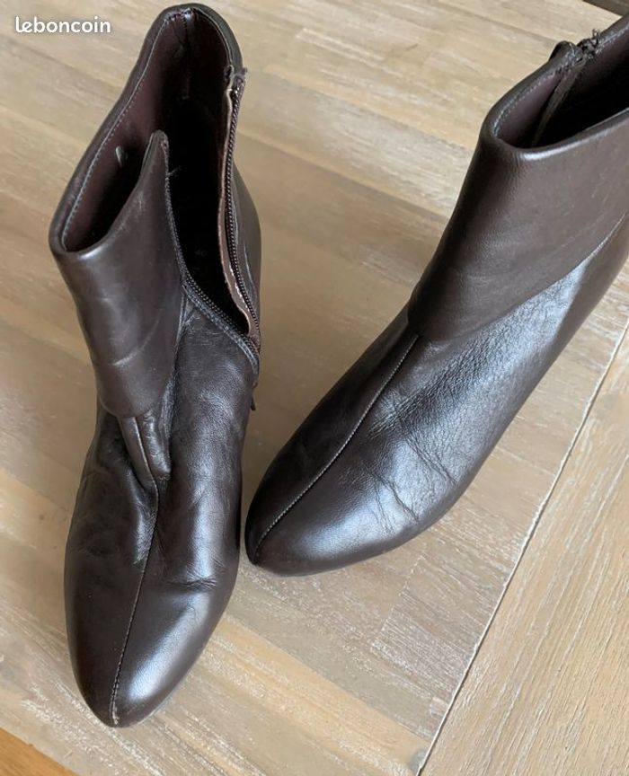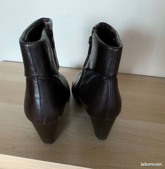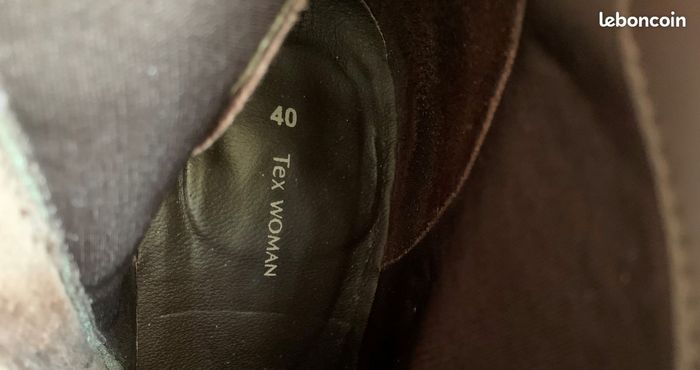 Bottines Tex Woman portées peu de fois. Couleur marron. Patins antidérapants. Taille 40. Hauteur talons 6,5 cm.