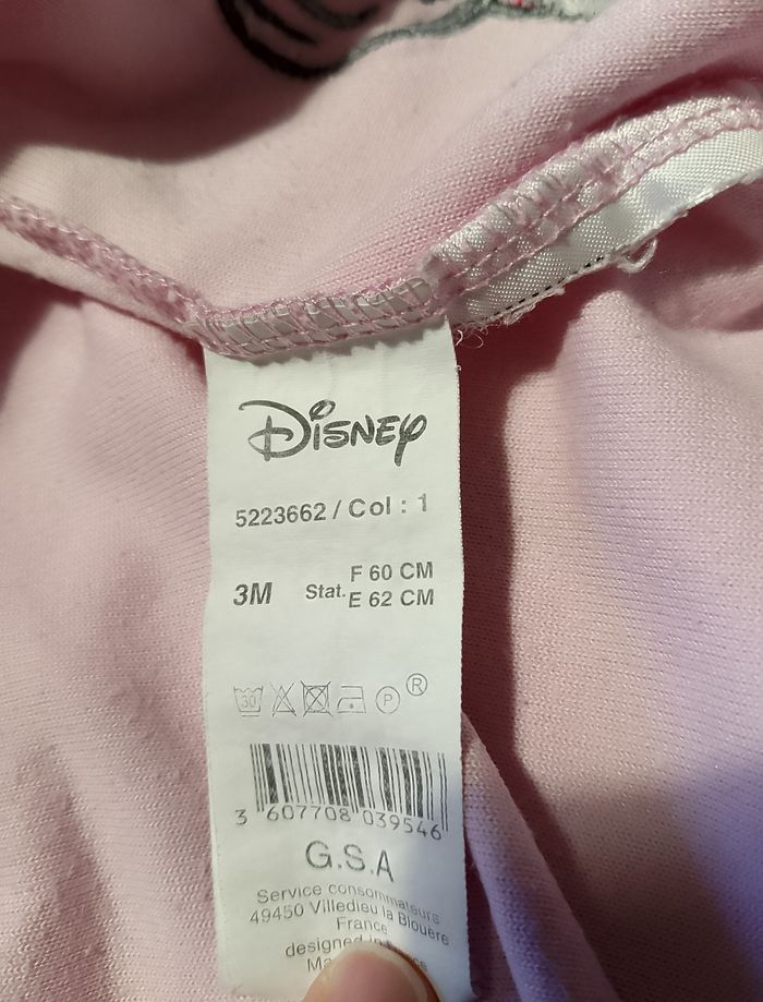 Joli pyjama Disney 3 mois, avec motif Minnie. Coloris rose et gris, doux et agréable à porter, parfait pour les nuits de bébé 🌸 🧺 Très bon état. ✔️ Aucun trou, aucune tache 👶 Pressions à l’entrejambe pour un habillage et un change faciles Idéal pour le quotidien, confortable et mignon 💕 ✨Détails : •Marque : Disney Minnie •Taille : 3 mois (3M) •État : Très bon état •Couleurs : Rose / gris 🎀 Prix: 4€