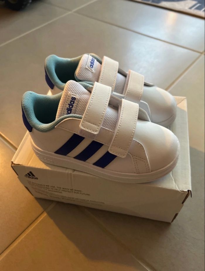 Chaussures à scratch adidas grand court 2.0 enfant mixte pointure 26 neuve (étiquette arrachée par mon fils)