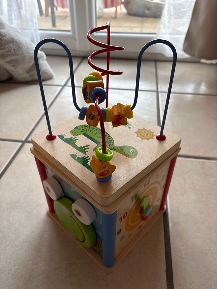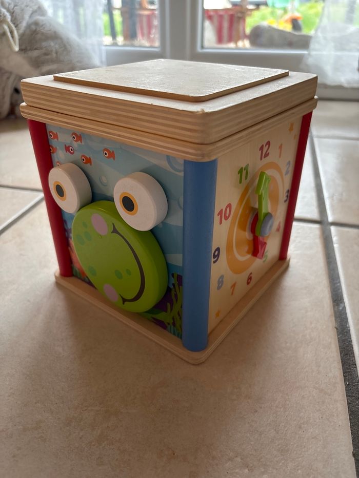 En bon état, manque cependant les 3 formes à encastrer, mais n’empêche pas l’utilisation du jeu.