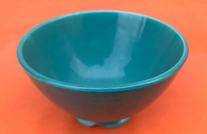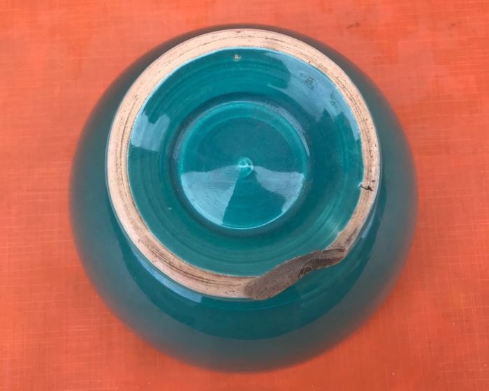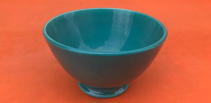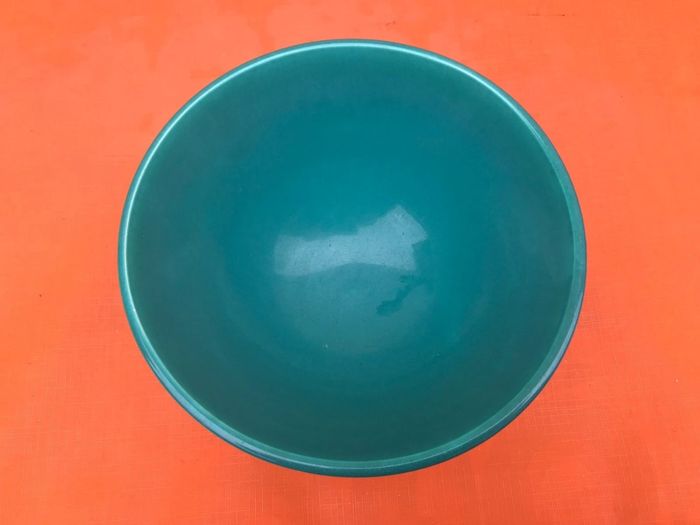 (article vendu en l' état, nous précisons éclat voir photo 4 et 5 , état d' usage voir toutes les photos) Années 1940 Bol sur piédouche Céramique émaillée Diamètre : 175mm Hauteur : 105mm Contenance : 1litre Poids : 630grs