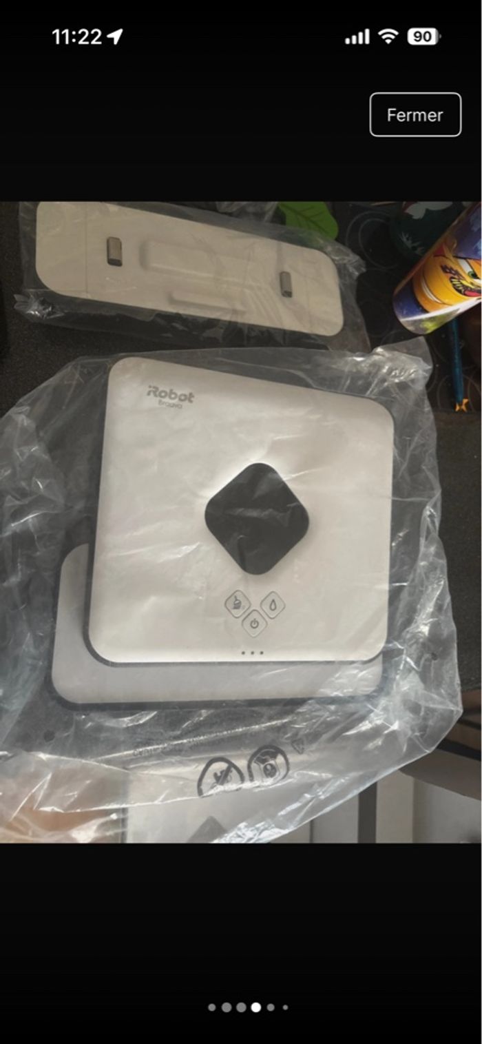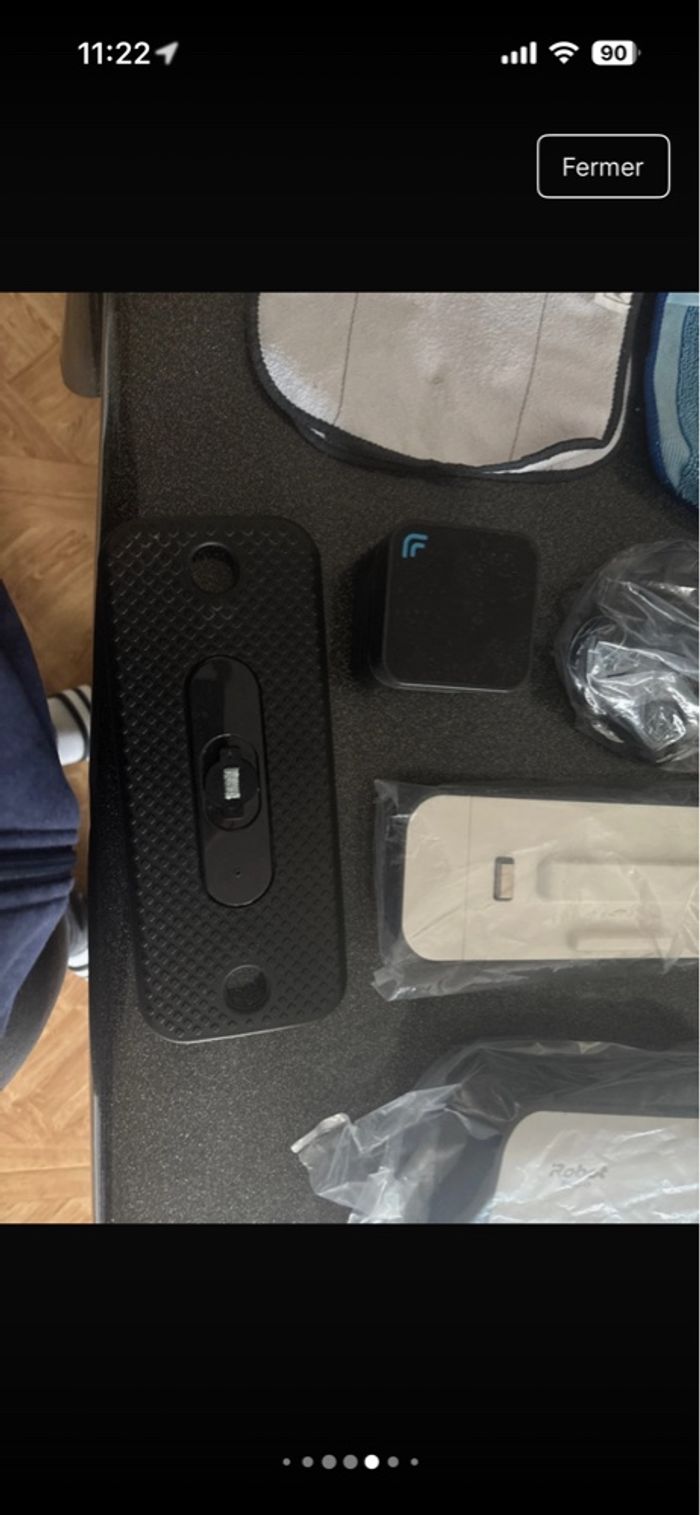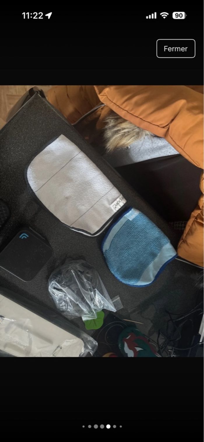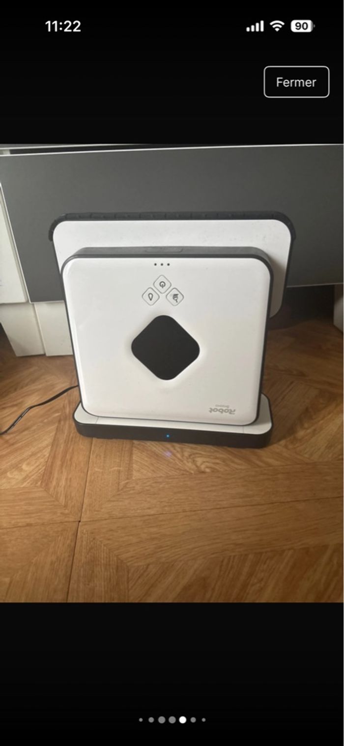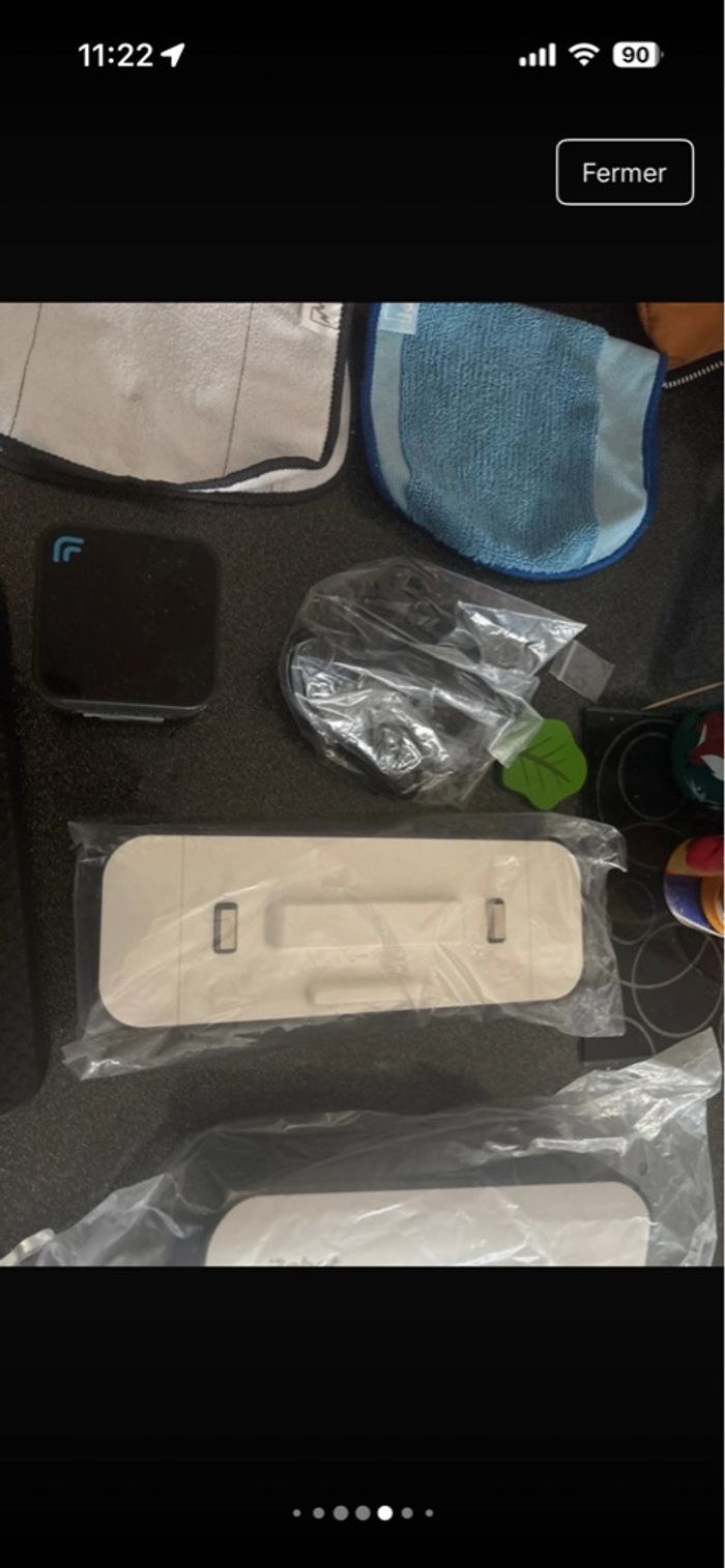 En bon état Avec lingette dépoussiérante et lingette pour le lavage Socle de rechargement, notice, boîtier détecteur pour les obstacles