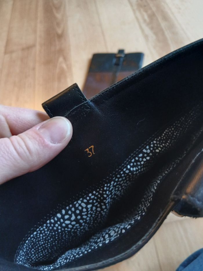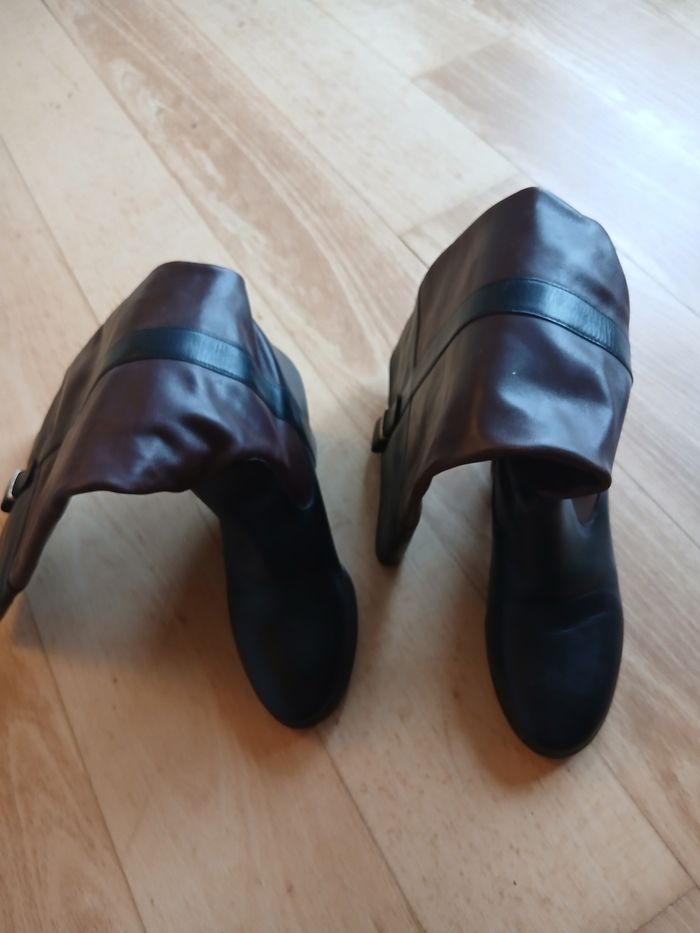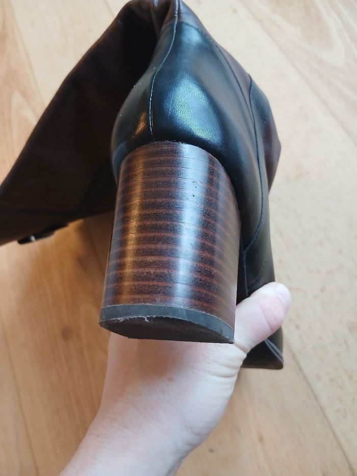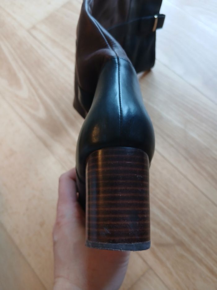 Bottes a talon, hauteur 6,5 cm de talon. Talon légèrement abîmés (cf photos), reste des bottes en très bon etat.