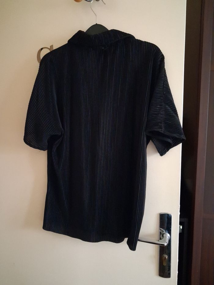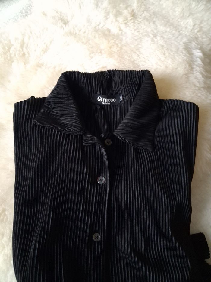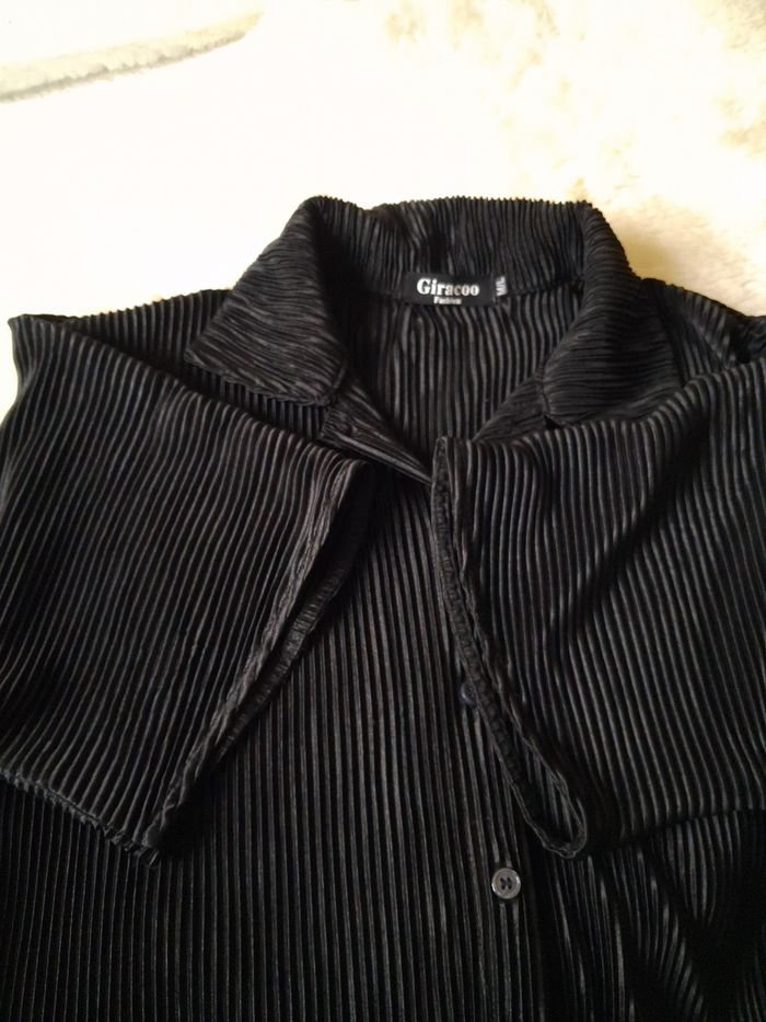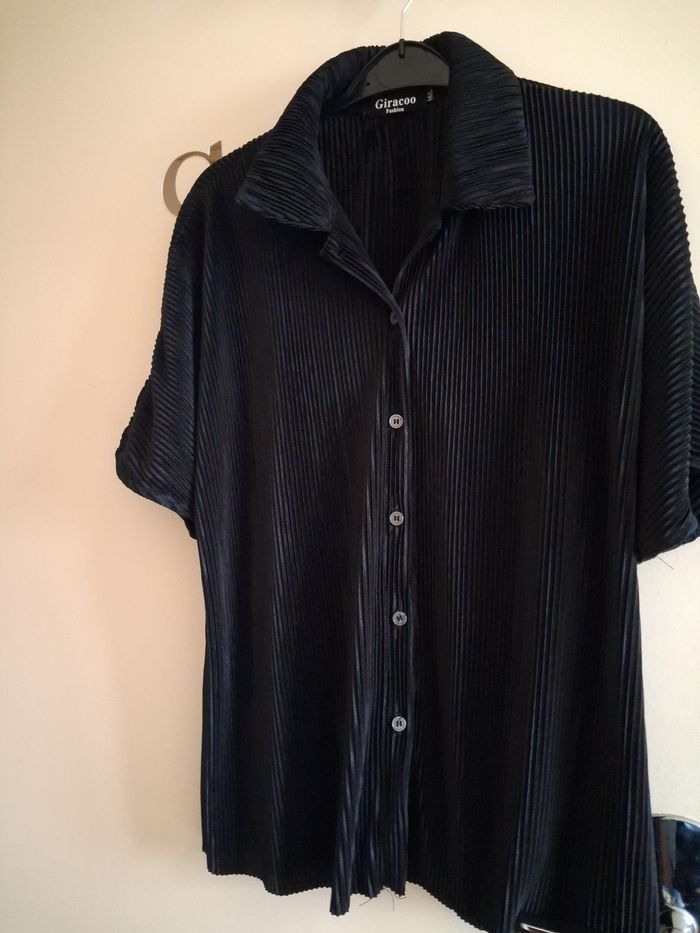 Jolie blouse femme chic et fluide, marque Giracoo Fashion en très bon état. Couleur noir. Taille M/L, convient pour effet oversize M ou ajusté pour L.Tissu plissé . Col classique, manches courtes, fermeture boutonnée devant. Matière 100%polyester. Longueur total 59cm, longueur depuis les aixelles 38cm, largeur épaules 38cm. Envoi rapide et soigné.