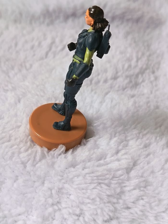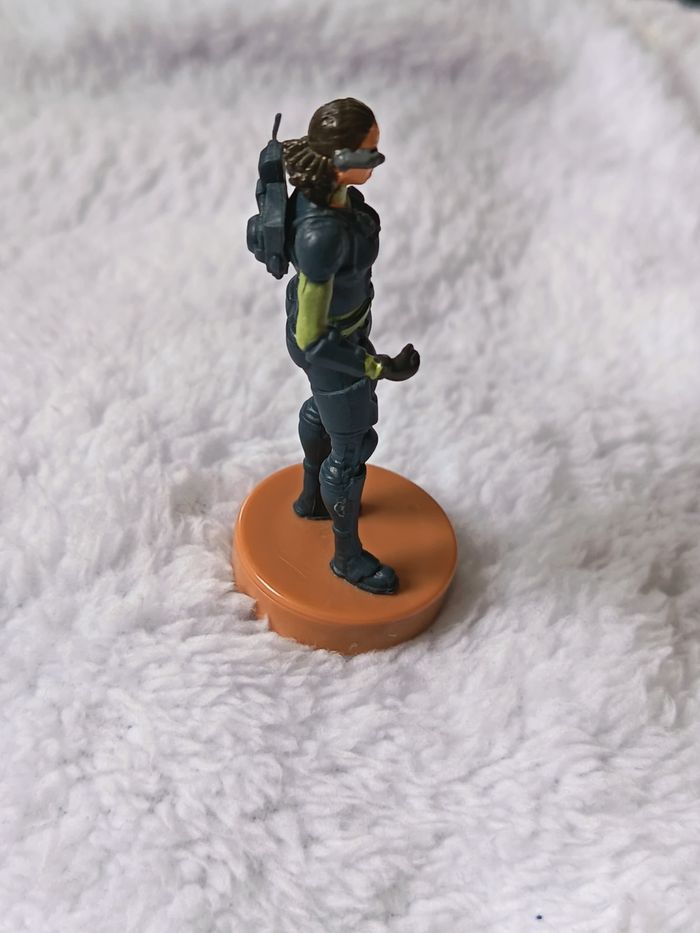 Vends cette figurine de collection issue de l'univers Fortnite (marquée © Epic Games). Ce modèle représente un personnage féminin avec un style futuriste/cyberpunk, équipée d'un oculaire technologique et d'une armure sombre. Particularité : La base de la figurine cache un tampon encreur (motif violet visible sur les photos). État : Très bon état général (voir photos pour les détails de peinture). Taille : Environ 7 cm. Authenticité : Marquage officiel "© Epic Games" gravé à l'arrière de la jambe. Envoi : le mardi et le vendredi Idéal pour les collectionneurs de goodies Fortnite ou pour compléter un set de figurines à tampon ! #skms62141_fortnite #Fortnite #EpicGames #Figurine #Tampon #Jouet