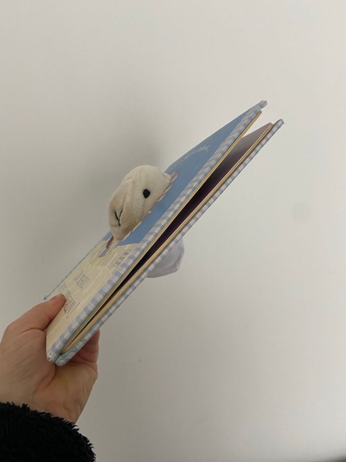 Vends un adorable livre d’éveil cartonné intitulé "Un bisou, mon lapin câlin !" (Éditions Quatre Fleuves). Ce livre interactif est parfait pour le rituel du coucher. Il intègre une marionnette à doigt en peluche (le lapin Câlin) qui traverse toutes les pages. Vous pouvez animer le petit lapin avec votre main pour interagir avec votre enfant pendant la lecture. • Auteurs : Lucile Galliot & Jonathan Lambert. • État : bon état . La peluche est propre et les pages cartonnées sont solides. • Âge : Idéal pour les bébés et jeunes enfants (0-3 ans). • Le petit plus : Une histoire douce et courte pour aider les tout-petits à se préparer au sommeil avec tendresse.