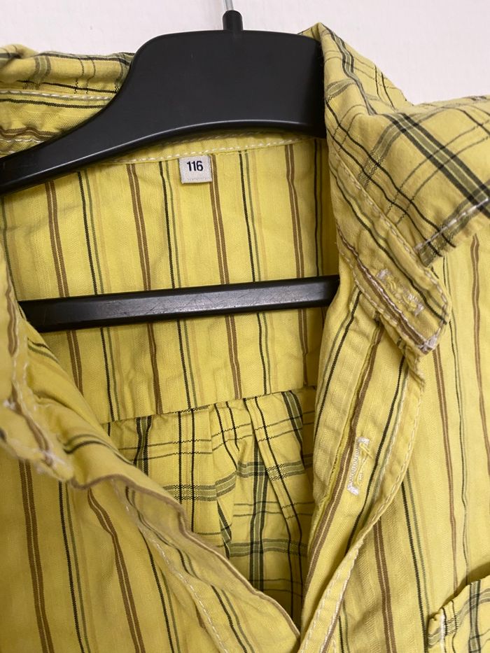 Je vends cette chemise enfant de couleur jaune moutarde à carreaux. - Type de produit : Chemise - Univers : Enfant - Taille : 6 ans / 116 cm - Couleur : Jaune moutarde - Caractéristiques : Carreaux, Manches courtes - Marque : Capitaine Tortue