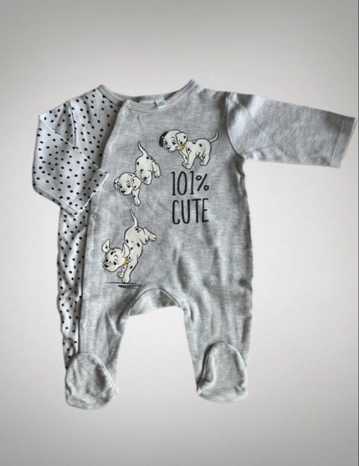Pyjama Taille 1 mois 53cm Garçon et fille - mixte Disney - 101 dalmatiens « 101% cute » Léger - été Gris blanc noir Boutons pression à l’avant Beaucoup porté - pas de défaut Prix de revente : 4€ Offre du moment : 1 pyjama acheté = 2eme à -50% (créez votre lot et attendez l’offre)