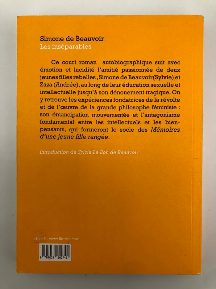 Réduction dès 2 articles achetés 5%, 3 articles 10%, 5 articles et plus 20% Me demander SVP pour que j'applique la réduction avec les frais de port au plus bas. Résumé: Une nouvelle inédite, autobiographique et intime de la grande philosophe, lauréate du prix Goncourt et icône du féminisme. Écrit en 1954, cinq ans après la publication du Deuxième sexe, Les Inséparables raconte l'amitié passionnée qui unit Sylvie à Andrée – alter égo de Simone de Beauvoir et d'Élisabeth Lacoin (Zaza) – depuis l'âge de neuf ans où elles font connaissance au Cours Désir. Andrée est joyeuse, impertinente, audacieuse tandis que Sylvie plus traditionnelle et timide se sent irrésistiblement attirée par cette personnalité solaire. Ensemble elles apprennent à se libérer des conventions et des attentes asphyxiantes de leur entourage, ignorantes du prix tragique à payer pour leur liberté et leurs ambitions intellectuelles et existentielle. Cette histoire cathartique pour l'auteur, peut-être trop révélatrice pour être publiée de son vivant, dont la publication aujourd'hui, augmentée de photographies personnelles et de lettres de l'époque entre les deux amies, constitue un véritable événement littéraire. (2)