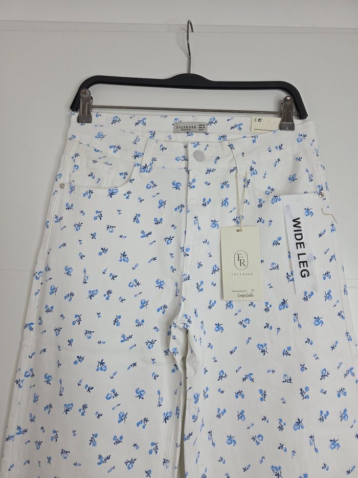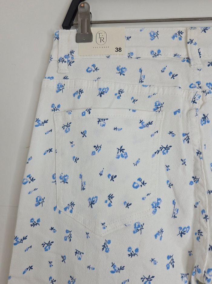 Jean Folyrose blanc avec fleurs bleues taille 38 - photo numéro 4
