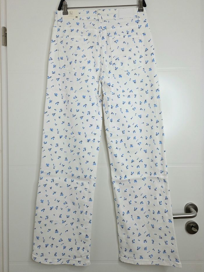 Jean Folyrose blanc avec fleurs bleues taille 38 - photo numéro 3