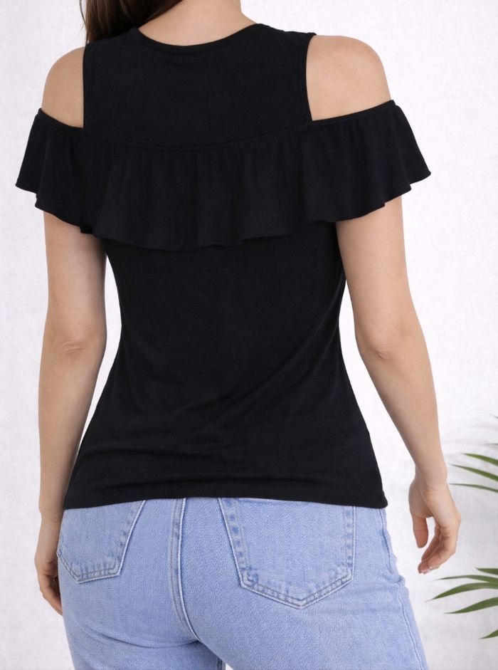 Top péplum épaules dénudées à volants Marque Kiabi, Taille 34 Noir uni Matière viscose, Elasthanne Très bon état