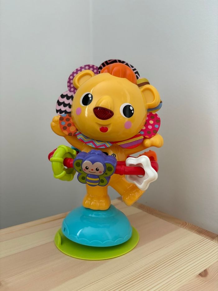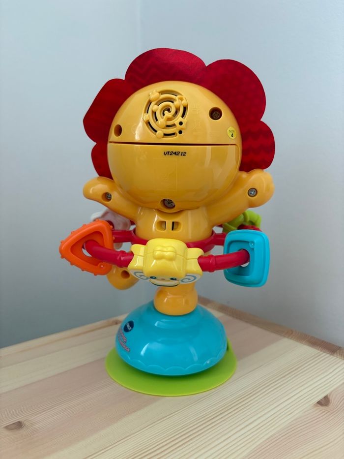 Joli jouet bébé en forme de lion coloré, idéal pour l’éveil et la motricité. ✔️ Fonctionne parfaitement ✔️ En très bon état ✔️ Jouet propre et désinfecté ✔️ Convient dès 6 mois