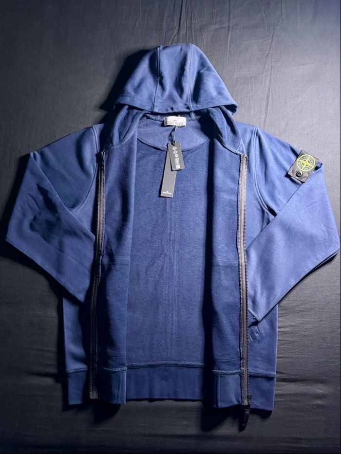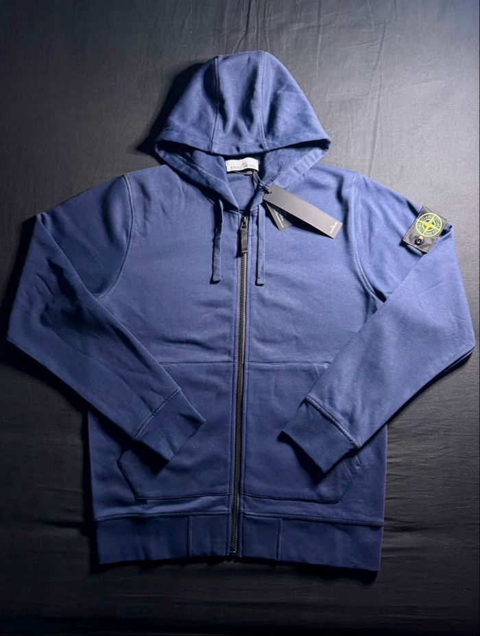 Veste Stone Island originale, coloris bleu marine. Modèle zippé avec capuche, badge Stone Island iconique sur la manche (amovible). Matière confortable et de très bonne qualité, parfaite pour un usage quotidien. ✨ État : neuf avec étiquettes 📏 Taille : M 👕 Coupe moderne et soignée ✅ 100 % authentique Idéale pour un look casual / streetwear. Envoi rapide et soigné 📦 N’hésite pas si tu as des questions !