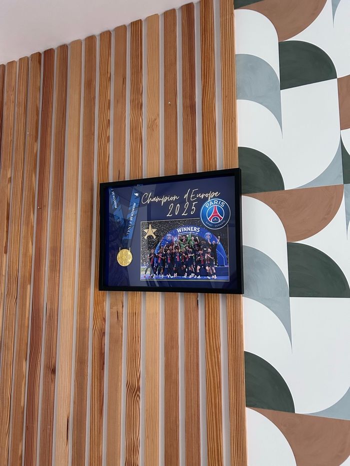 Cadeau idéal pour un fan du PSG Dimension cadre 40cm x 30cm Dans le cadre ce trouve une réplique de médaille que les joueurs de Paris on reçu le jour de leur victoire #paris #leaguedeschampions #dembele #doue #barcola #vithina #neves #winner #football #psg #parissaintgermain #kwaratshkeila