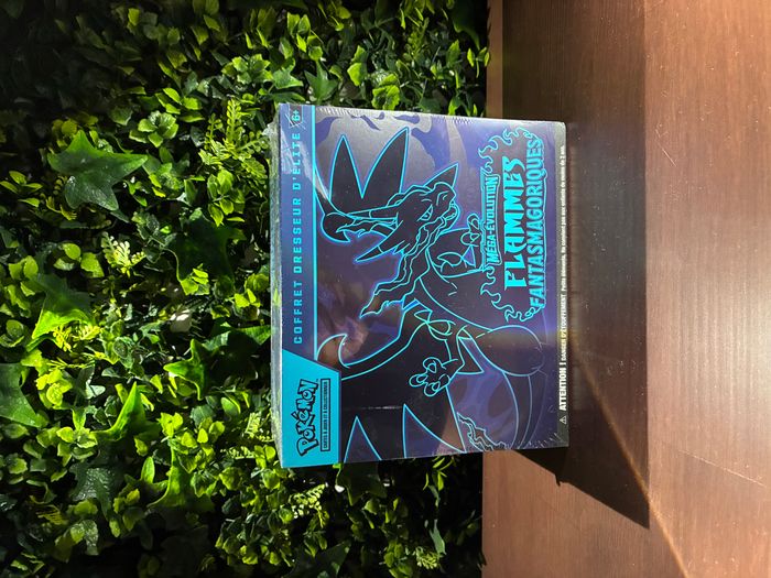 ✨ Coffret dresseur d'élite méga-évolution - flammes fantasmagoriques ✨ Avis aux collectionneurs ! 📢 Je mets en vente ce superbe Coffret Dresseur d'Élite (ETB) mettant à l'honneur l'emblématique Dracaufeu dans sa forme Méga-Évolution. 🐉🔥 C'est une pièce magnifique avec un design bleu et noir profond qui ne laisse personne indifférent. 💎 ⚠️ Attention - Défaut de scellage : Comme vous pouvez le voir sur les photos de profil, le film plastique présente un défaut de scellage important sur le côté (le plastique est déchiré sur une partie). Le coffret reste toutefois scellé et son contenu est 100% neuf et intact. C'est l'occasion parfaite pour un collectionneur qui souhaite ouvrir le coffret ou qui privilégie le prix à la perfection du scellé extérieur ! 🧐🛡️ 📦 Contenu du coffret : 8 boosters de l'extension 🃏 65 protège-cartes (sleeves) exclusifs Méga-Dracaufeu 🛡️ 45 cartes Énergie du JCC Pokémon ⚡ Un guide de jeu et divers accessoires (dés, marqueurs d'états) 🎲 Une boîte de rangement collector avec 4 séparateurs 🗂️ #Pokemon #PokemonTCG #Dracaufeu #Charizard #MegaEvolution #FlammesFantasmagoriques #ETB #EliteTrainerBox #PokemonCollector #CartesPokemon