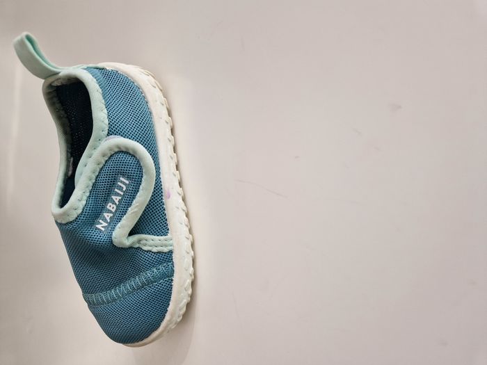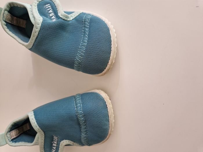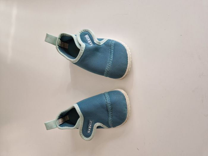 vends une paire de chaussures à scrtach aquatiques pour bébé garçon de marque Nabaiji trés bon état, en pointure 22.23 je vends d'autres affaires, n'hésitez pas à me demander si besoin