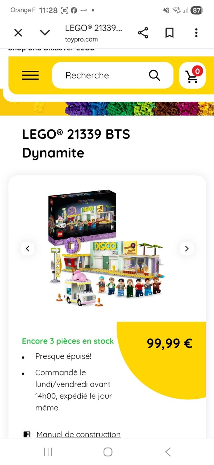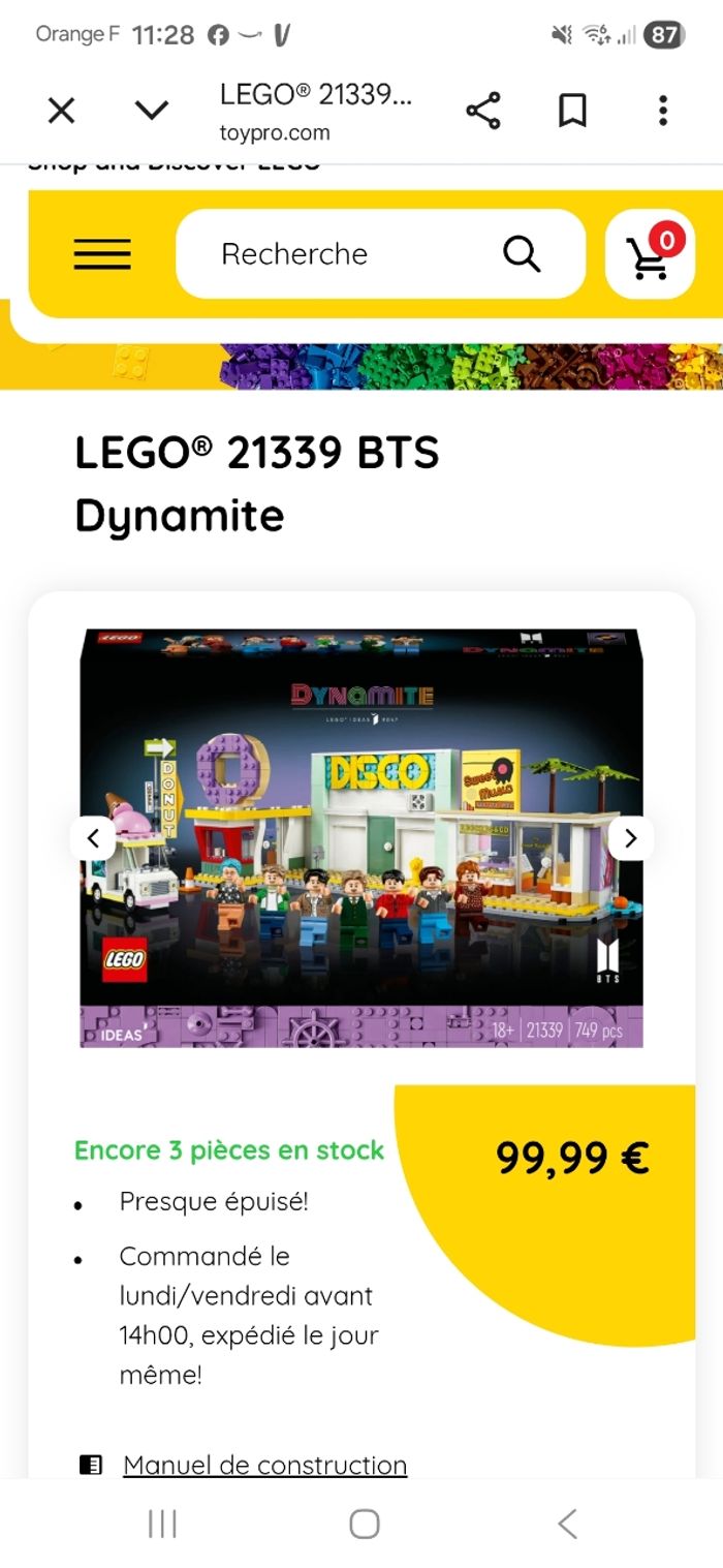 Lego 21339 Authentique BTS dynamite Tres bin etat Manque 2 pièces mais ne gêne en rien l'utilisation Vendu sans boite sans notice Facile a retrouver sur internet Avec la référence lego Envois rapide et soigne