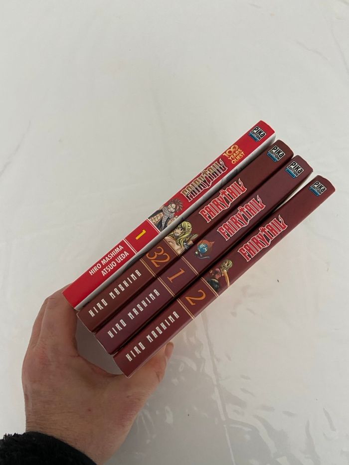 Vends lot de 4 mangas de la célèbre série Fairy Tail de Hiro Mashima (Éditions Pika). Les volumes sont en très bon état général, les couvertures sont propres et les pages ne sont pas cornées. Le lot comprend : • Fairy Tail : Tomes 1, 2 et 32. • Fairy Tail - 100 Years Quest : Tome 1 (la suite officielle). Idéal pour commencer la collection ou offrir ! Détails supplémentaires : • Langue : Français • Éditeur : Pika Édition • Format : Broché • Envoi rapide et soigné ou remise en main propre