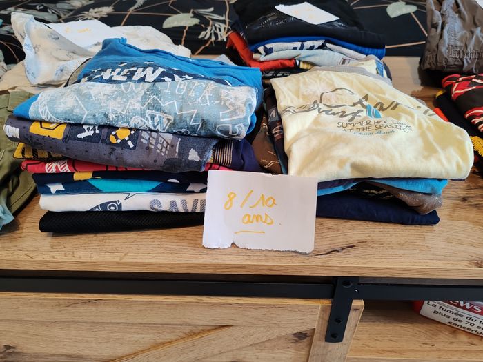 Bonjour, je vends un lot non dissociable de vêtements enfant garçon il y a une trentaine de vêtements. Du 8 ans au 14 ans. La plupart sont en très bon état. T-shirt manches courtes t-shirt manches longues une chemise et des pantacourt. Autres photos sur demande ☺️