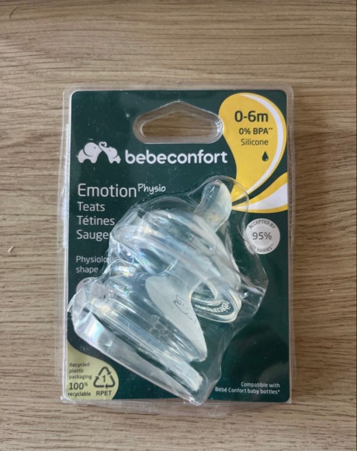Tétine de la marque bébéconfort 0- 6 mois idéal pour antialcoolique et physiologique, neuf jamais déballé