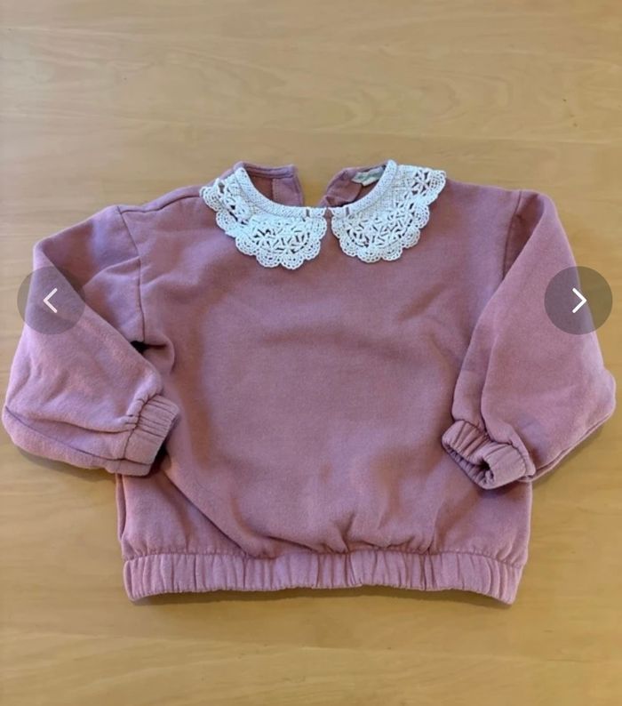 Sweat Rose et col claudine blanc broderie Tres joli! Sweat vertbaudet