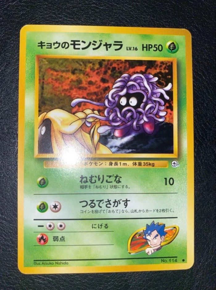 Koga’s Tangela – No.114 Série : Gym 2: Challenge from the Darkness (1999, Japon) Éditeur : Nintendo Nom japonais : キョウのモンジャラ Niveau : LV.16 – HP 50
