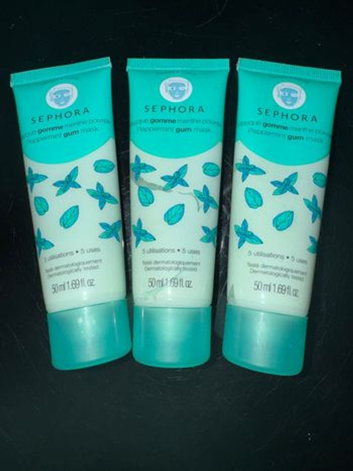 Lot à de 3 masques gomme Sephora menthe poivrée Neufs, jamais utilisés. Effet tonifiant, nettoie et lisse la peau. 50 ml chacun (environ 5 utilisations).