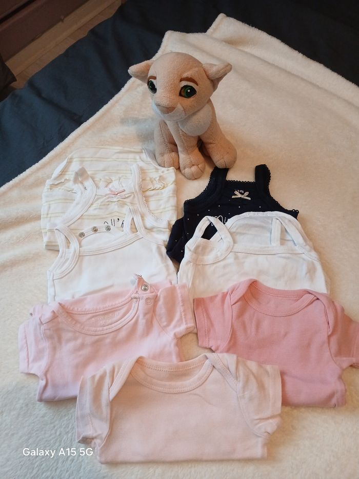 Lot composé de plusieurs bodies manches courtes et à bretelles tres bon état de taille 3 mois